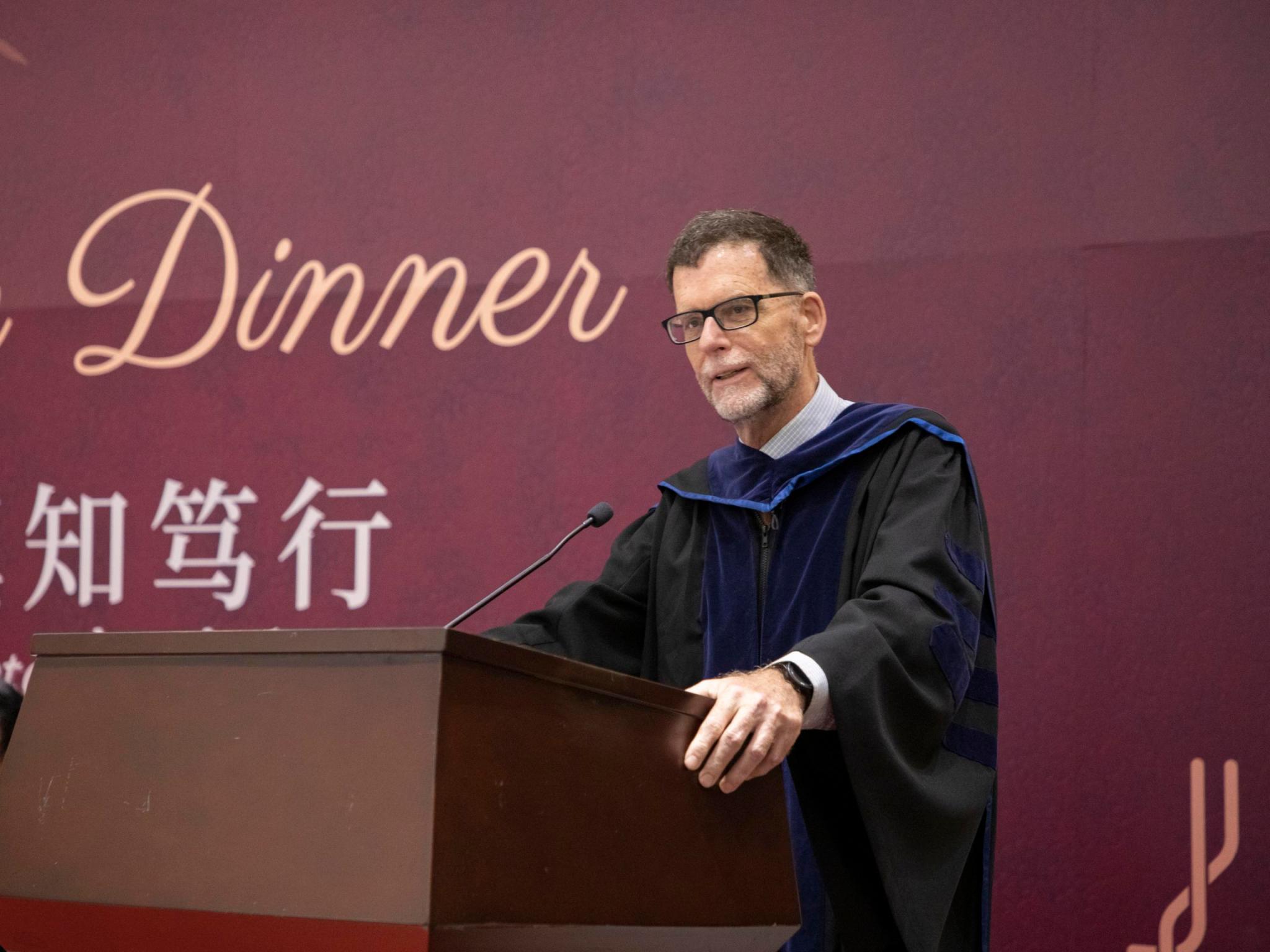 10月12日晚,北师港浸大(UIC)人文与社会科学学部(DHSS)高桌晚宴在T1-101举行,来自香港中文大学(深圳)翻译及口译专业的Douglas Jack Robinson教授以“文学或翻译,我们该如何选择?(Literature or Translation? How Do We Choose?)”为主题,分享了他作为译者和教师的经验感悟。DHSS的师生们共赴晚宴,畅谈未来规划,交流学习感悟。