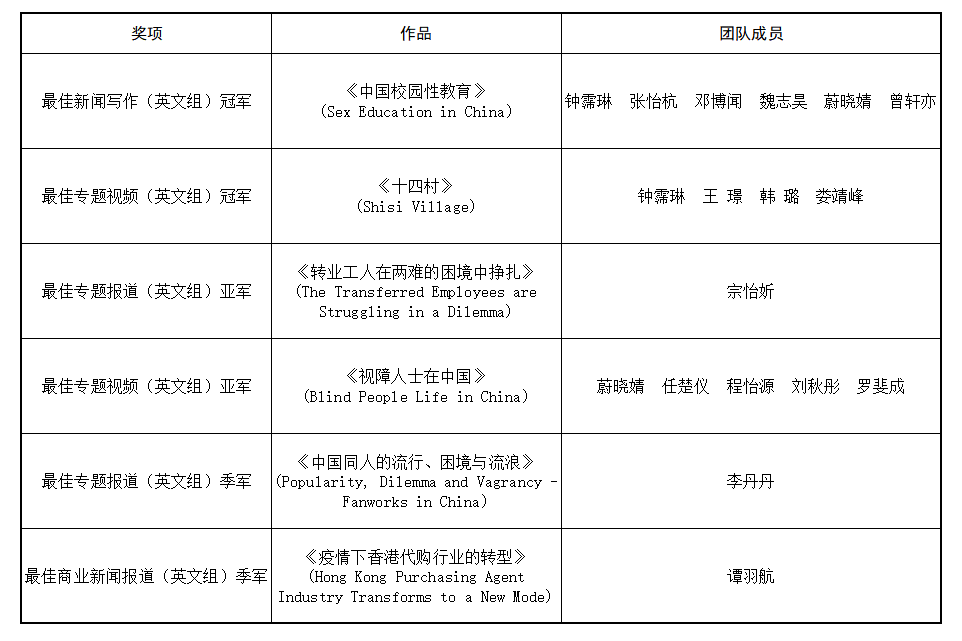 近日,中国日报“2021大学新闻奖”颁奖典礼在香港举行,来自北师港浸大(UIC)新闻学专业的16名学子在新闻写作、专题视频、专题报道等英文组项目中喜获冠军2项、亚军2项、季军2项,在包括清华大学、南京大学、香港中文大学、香港浸会大学等54所高校770份中英文参赛作品中脱颖而出。