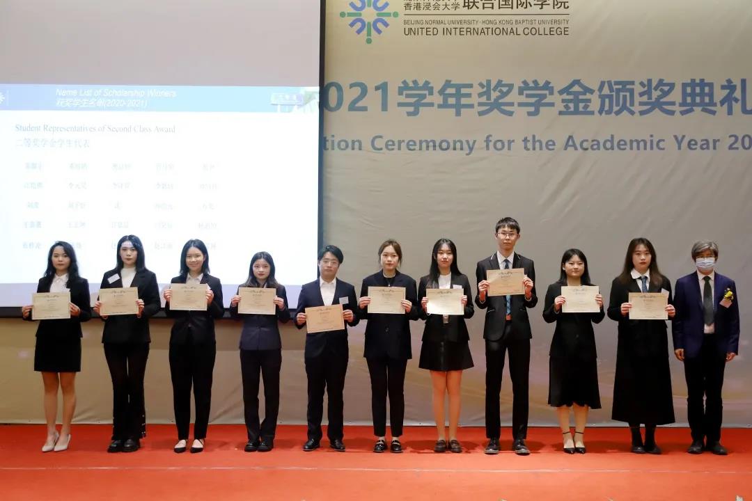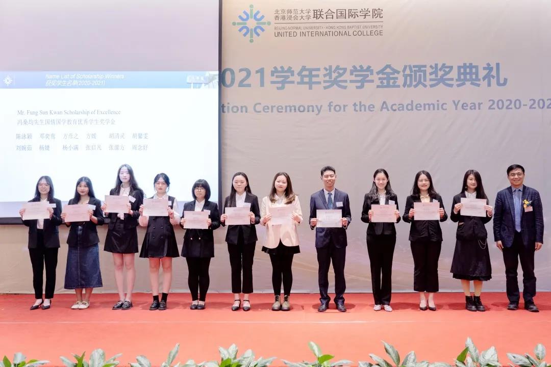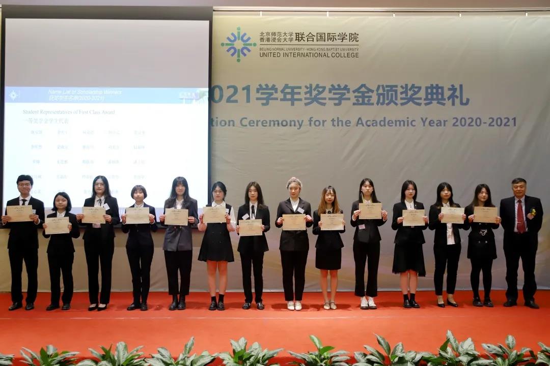 2021年12月8日,2020-2021学年奖学金颁奖礼在UIC大学礼堂举行。27名学生获得了各项殊荣。其中大四的姜许国蓉同学获得了许嘉璐全人教育奖。钟宇怡同学获得了院长推荐奖学金。王月娇同学获得了蜜蜂科技Beeplus奖学金。大三的Yu Kyung JEON 同学获得了广东省政府来粤留学生奖学金。张启凡同学获得冯燊均先生国情国学教育优秀学生奖学金。8名同学获得一等奖学金。14名同学获得二等奖学金。7名同学获得UIC实习实践奖学金。