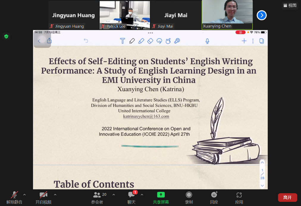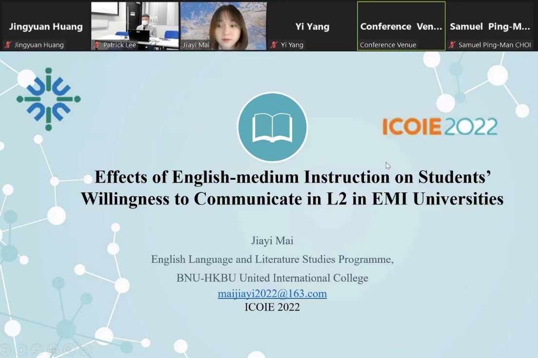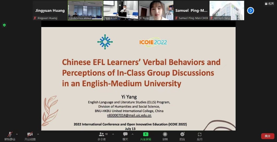 当代教育下的学习模式和教学越来越开放,在时间、空间、课程、组织、教学方法、基础设施和要求方面也越来越创新。教育者必须跟上并适应新发展,以应对新需求并抓住新机会。7月13日至15日,北师港浸大(UIC)五名四年级学生在线参与在香港举行的2022开放与创新教育国际会议(ICOIE 2022)。他们向大会提交了论文并成功在会上发表。其中麦嘉仪同学摘取了本届大会最佳学生论文奖的桂冠。