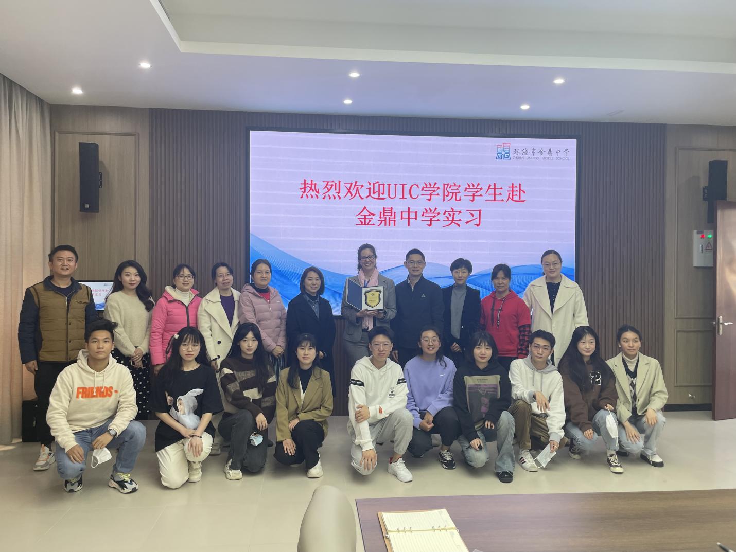 金鼎中学的实习开幕式于2月27日早上9点在金鼎中学学校会议室进行,出席嘉宾包括了UIC英语语言文学专业助理教授Dr. Malila Prado、金鼎中学教研处负责人钟主任、UIC英语语言文学专业一级助理导师陈织秋女士、金鼎中学英语组老师们及所有来自UIC的实习同学。钟主任向学生们表达了热烈的欢迎,并介绍了学校历史及现状。他强调:“实习实践对教育专业的学生意义重大,与理论学习同等重要。”