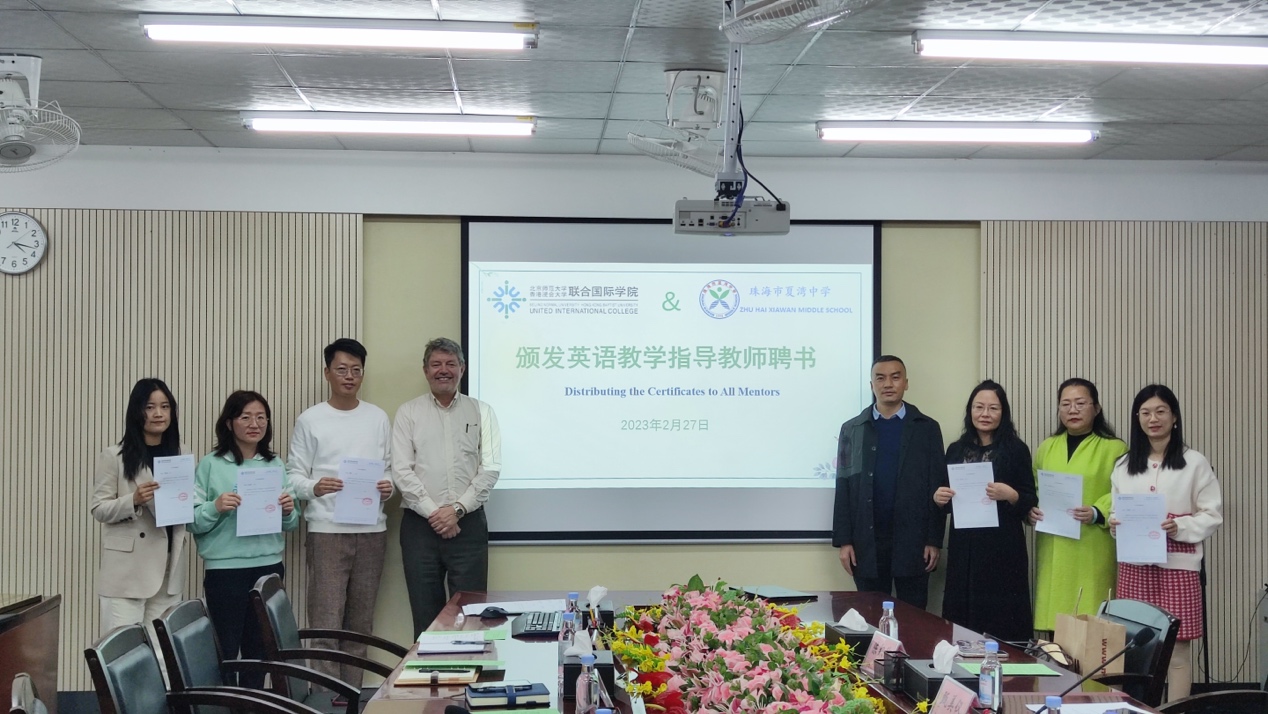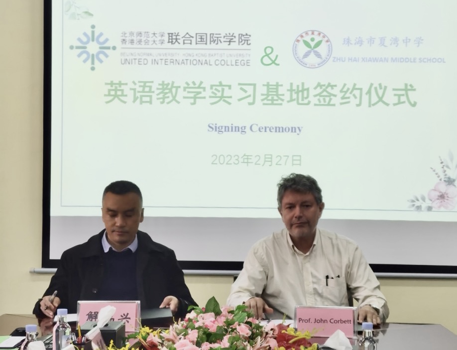 2023年2月27日下午,珠海市夏湾中学与北京师范大学-香港浸会大学联合国际学院(UIC)在夏湾中学完成共建英语教育专业实习基地的签约及挂牌仪式。