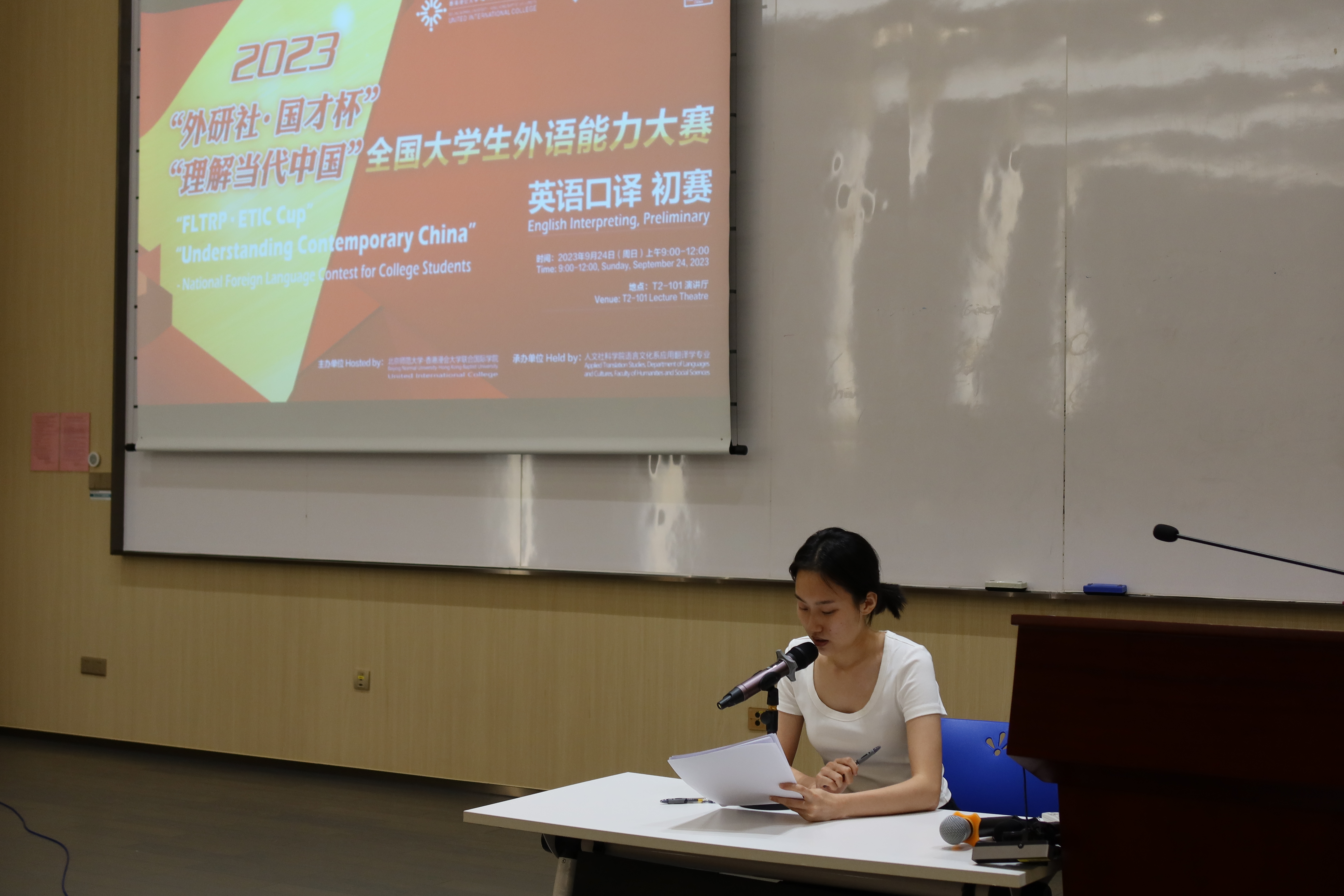 2023年9月23至24日,北师港浸大(UIC)人文社科学院语言文化系成功举办了2023“外研社·国才杯”“理解当代中国”全国大学生外语能力大赛UIC校级初赛,顺利完成英语写作、阅读、笔译、口译四个赛项的选拔。
