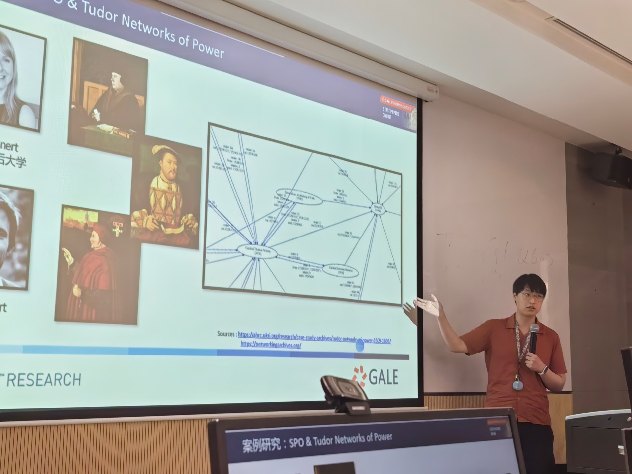 图1:石亦宸先生讲解Gale数字人文研究工具的运用和影响力。
