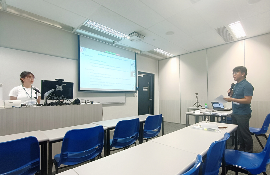由于我们是第一次参加学术会议,在对于如何将逻辑性和普适性贯彻始终这一方面遇到了比较大的挑战。而甄老师给我们提供了很多建设性的反馈,例如,怎样将抽象的理论讲的通俗易懂,如何展示数据能使得我们的表达更清晰明了,怎样在讨论部分阐明研究的亮点,怎样将研究结论应用到更广泛的语言学习者身上。此外,甄老师还让我们在今年的“研究技巧”课上做演讲排练。一方面,我们能够收到来自学弟学妹的意见反馈,另一方面,我们的勇敢尝试也会给学弟学妹即将面对的FYP和学术研究带来一定的信心;这种跨年级的学习与交流帮助了我们共同成长与进步。