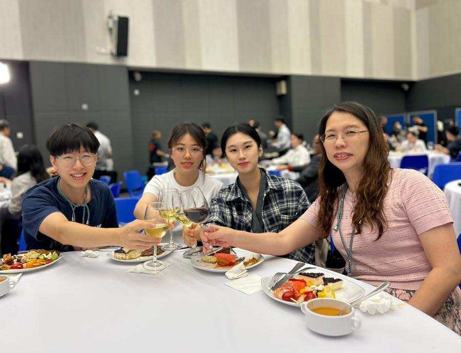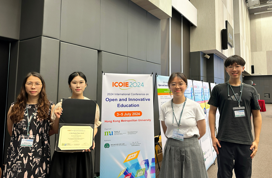 师生一行参加ICOIE 2024:(左起)甄美仪副教授、宋晶晶同学、姚楠同学、周子骞同学