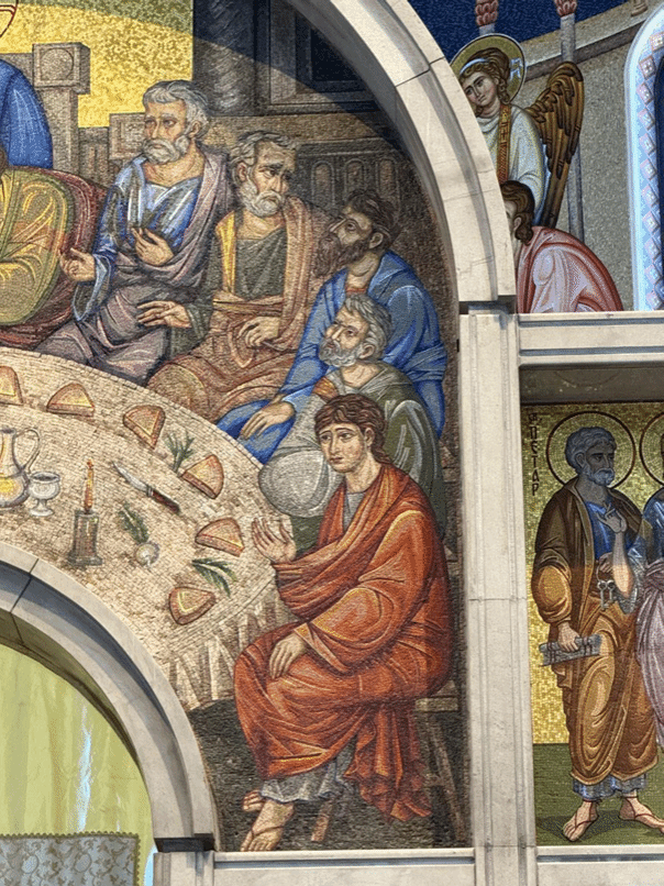 圣马可教堂中米尔雅娜·米利奇创作的马赛克作品(右侧橙色人像部分)