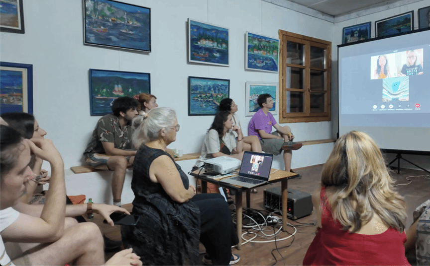 及受访的马赛克艺术家米尔雅娜·米利奇(右侧站立者)共享