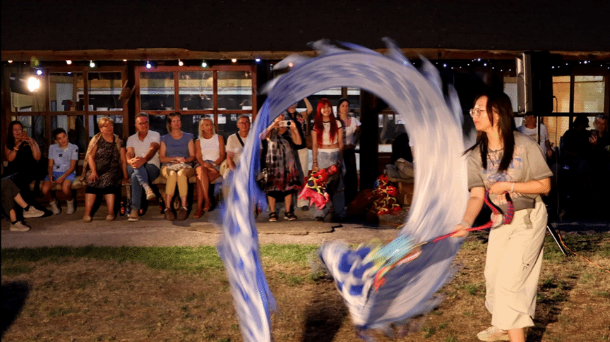 媒体与传播学专业的赵静涵在Zalet艺术节开幕式表演健身龙