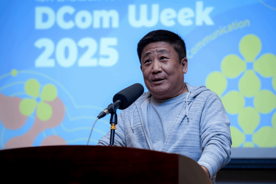 Prof. Steve Zhongshi GUO, Associate Dean for Research and Development of Faculty of Humanities and Social Sciences, and Dr. Jesse Owen Hearns-Branaman, Head of the Department of Communication, made the opening speech. With the unveiling from the guests, the new logo of DCom officially met with the audience. The logo’s three primary colors are drawn from the three programmes: the yellow of CCGC, the blue of MCOM, and the orange of PRA. They intertwine to form DCom’s visual identity, symbolizing collaboration as the spirit of DCom.