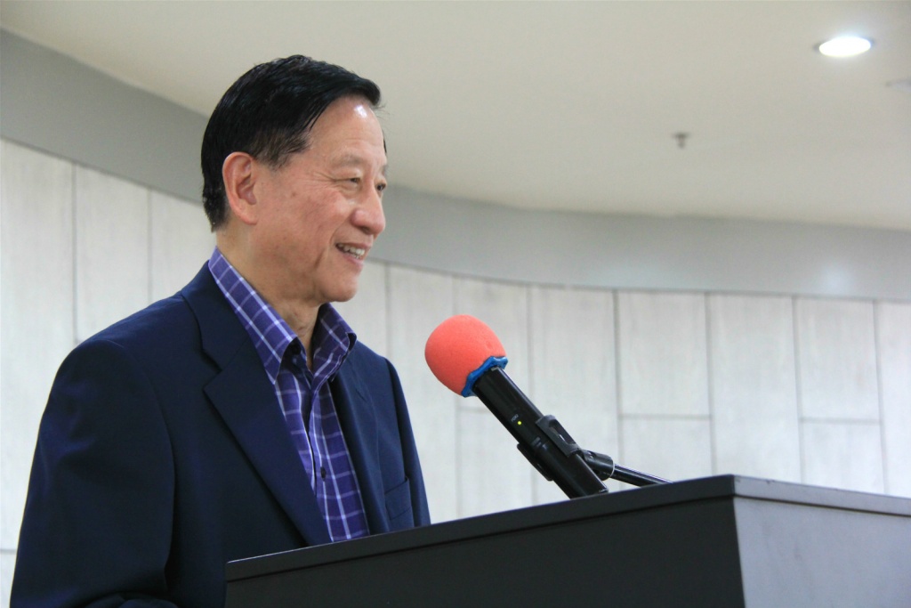 PRA学生廖子良在与现任教授吴(右一)和院长宋教授(左一)在座谈会上