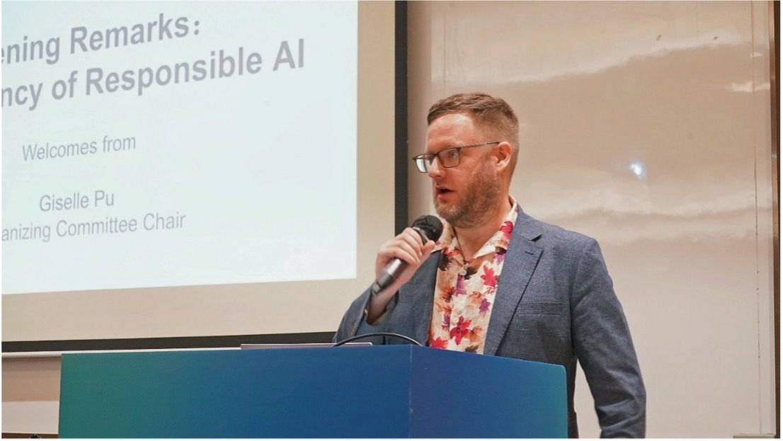 会议开幕式由北师港浸大人文社科学院传播系系主任 Jesse Owen Hearns-Branaman 博士主持,研究生院院长黄煜教授致开幕辞。黄教授表示,人工智能的负责任发展需要卓越的跨学科合作。他相信本次会议为研究人员、从业者、政策制定者以及社会各界人士提供了一个重要的对话空间。在本次会议的平台上,拥有不同学科背景的社区成员们共同交流了人工智能对未来社会的贡献,这将有助于整个社会在技术背景下的积极发展。