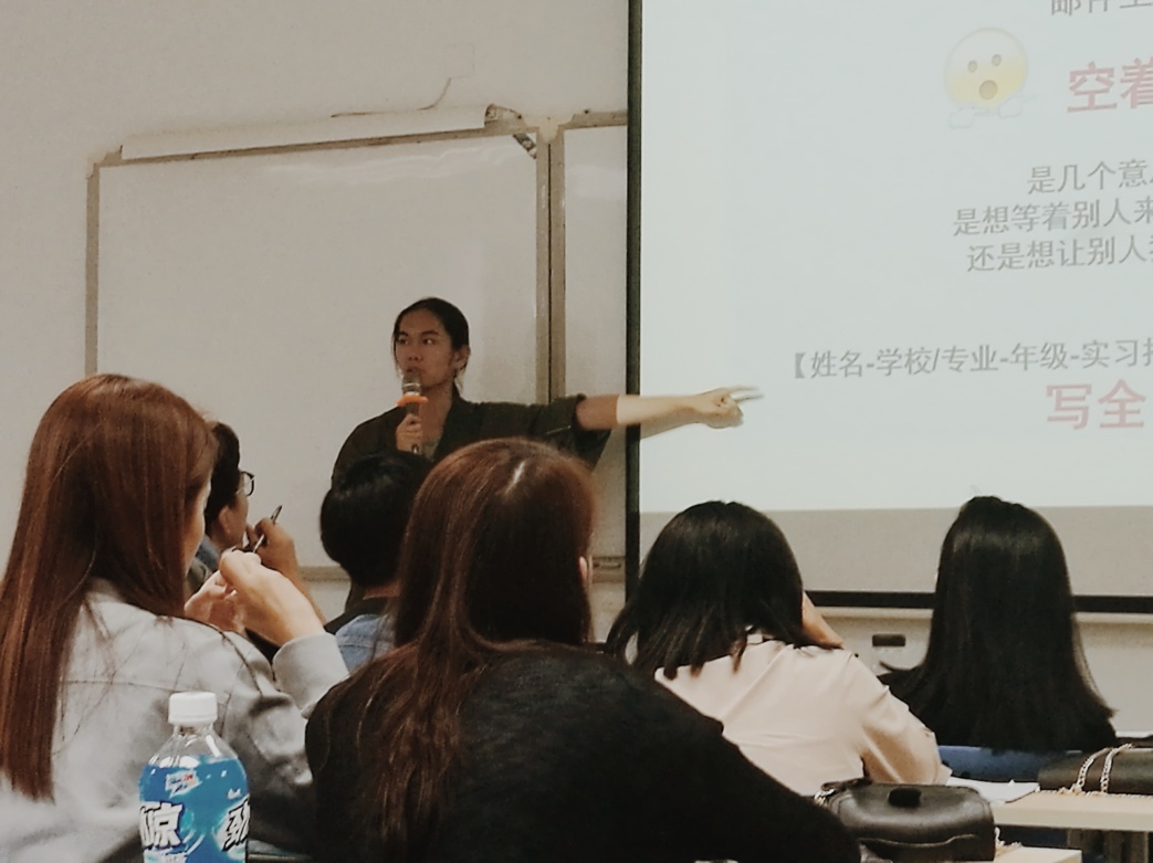 他们不仅对工作进行了详细的解释,还与我们分享了这段经历,并给出了宝贵的建议,例如建立人脉的重要性,要对工作保持激情,并且加强对办公软件的使用等。也告诉我们上级最重视的是工作态度,其次才是能力。