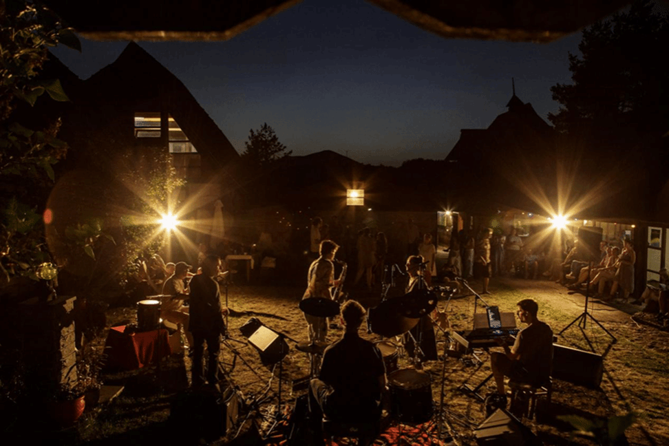 The opening band at Zalet Art Festival performs in a courtyard surrounded by traditional Serbian farmhouses (Photo/Milo Smoljanic)