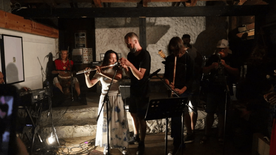 During one of the band performances local musicians pulled a BNBU student from her comfort zone when they asked her to pick up a flute for an improvised stage performance that blended Chinese folk tunes with Balkan rhythms. "Everyone created together without constraints," said flautist Qiu Ziyi, a incoming junior Media and Communication Studies major. "This is the true connection of souls."