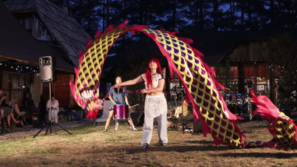 Chen Xuanru practicing fitness dragon dance ahead of the opening ceremony of the Zalet art festival (Photo/Milo Smoljanic)