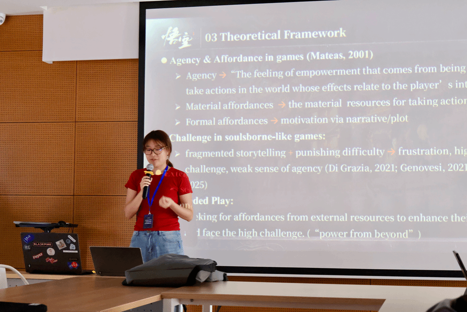 The industry visit anchored theory in production reality. In “Game Narrative Design Sharing (游戏叙事设计分享),” Mr. Duoliang Sun—drawing on nearly 20 years of industry experience—outlined how franchises in wuxia, mecha, and ACGN evolve narrative systems over time, how micro-level cultural details (naming, architecture, combat rhythm) scale into world-level authenticity, and how readable mechanics increasingly carry story without heavy exposition.