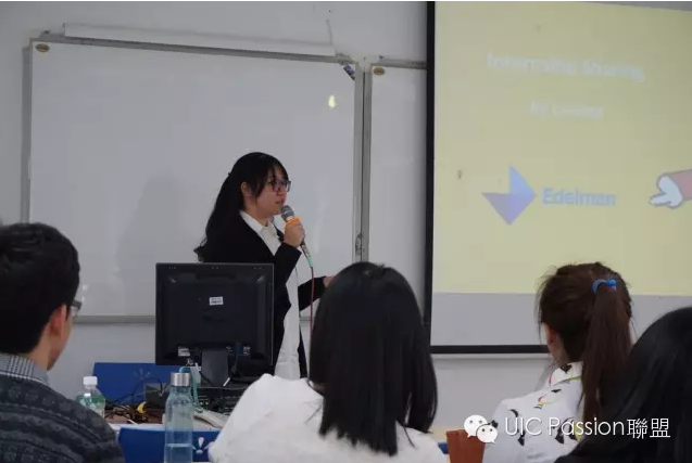 First, Yingzhi Liu, one of the best public relations companies in the world, interned in Edelman Public Relations Worldwide Co., Ltd. She shared her unique interview experience and interview skills with students.